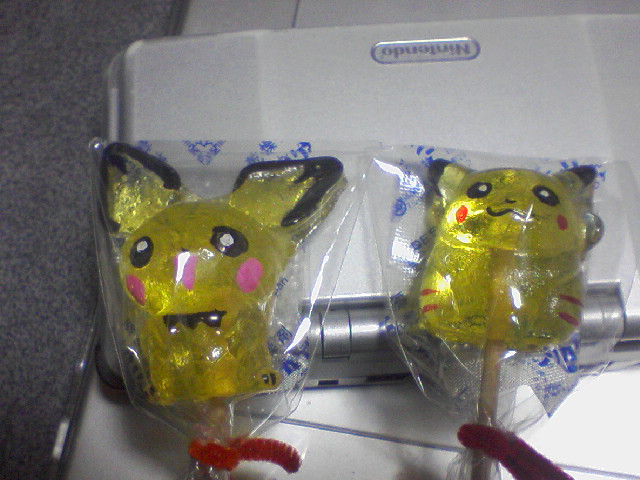 お土産はピカチューとピチューのアメ細工。一個400円・・・(思い出はプライスレス)いいんだいいんだ!私はポケモンに貢ぐことに躊躇なんてしないんだから!!